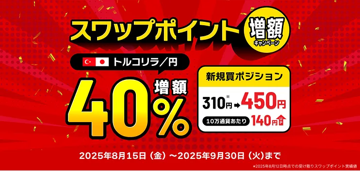 インヴァスト証券株式会社は、2025年8月15日から2025年9月30日までの期間中、外国為替取引サービス「トライオートFX」に特別なキャンペーンを開催します。このキャンペーンでは、トルコリラ/円に新たに建玉を形成した投資家に対して、スワップポイントを上乗せして還元するというものです。