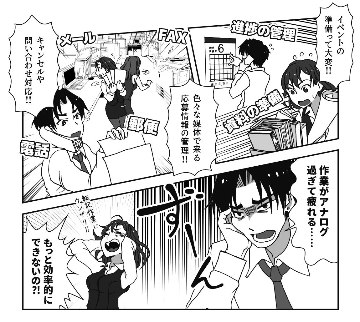 このマンガは、ITに精通していない方でも理解できるよう、ストーリー形式で楽しく学べる内容になっています。主人公が直面する業務の悩みや、導入後の成功体験を通じて、Webサイトと『kintone』を連携させるメリットを具体的にイメージしやすいよう工夫されています。