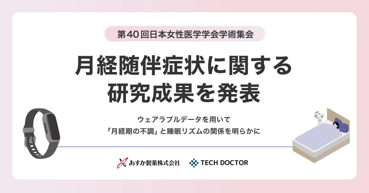 2025年11月1日と2日に東京のホテルイースト21で開催される第40回日本女性医学学会学術集会において、株式会社テックドクターとあすか製薬が共同で進めた研究の成果が発表されました。テーマは月経随伴症状であり、この研究はヘルスケアアプリ『4MOON』のユーザーの協力により実施されました。