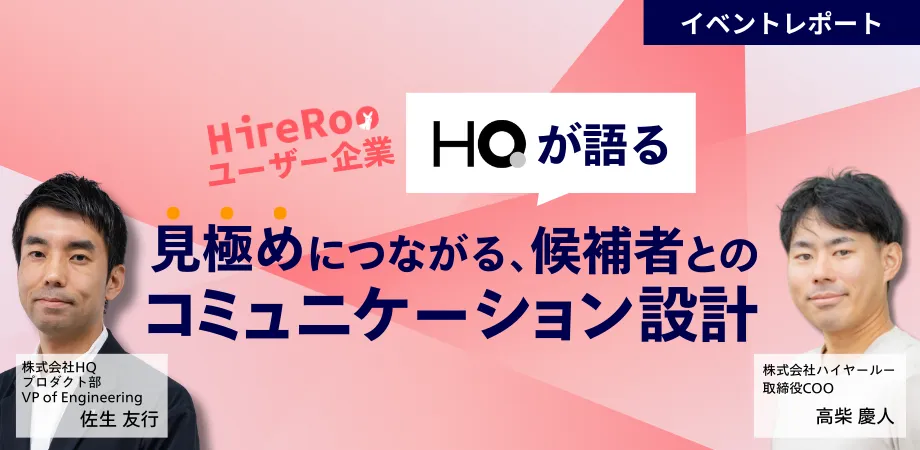 本イベントでは、HQ社のプロダクト部でVP of Engineeringを務める佐生友行氏が特別講演を行い、採用過程における効果的なコミュニケーション設計についての知見を共有しました。特に、技術面接における「カルチャーフィット」の重要性が強調され、技術的スキルだけでなく、組織との価値観の一致が長期的な雇用につながると述べられました。