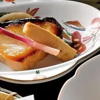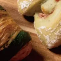 - - ロゼワインに漬け込んだ猪もも肉の自家製ハム、林檎とブッラータチーズのコンポジション