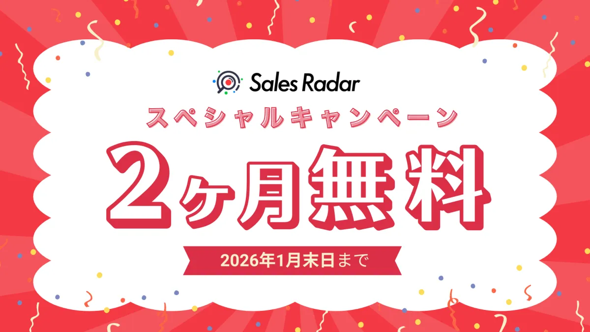 - - キャンペーン期間中の契約で、SalesRadarを2ヶ月間無料提供
