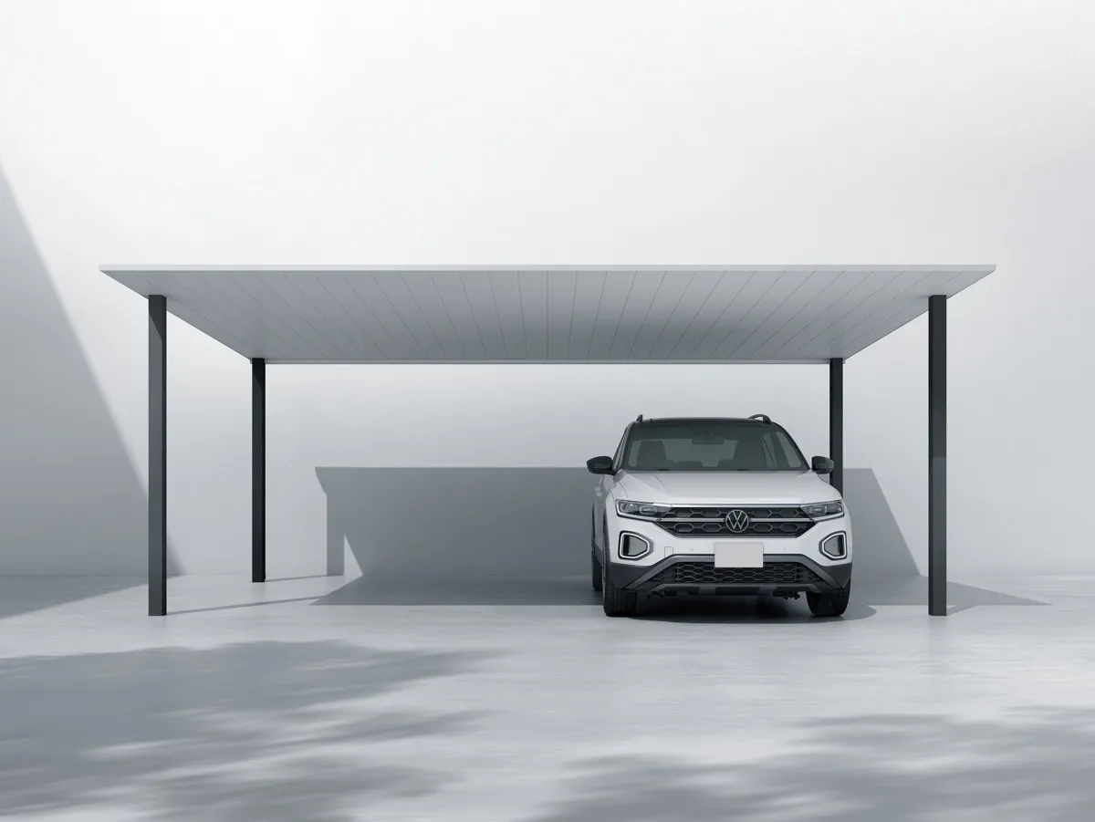 「プレーンルーフ」は、水平な屋根と垂直な柱が強調されたシンプルなアルミ製カーポートで、住宅に自然に溶け込む一体感を創出します。日常生活における車の乗り降りのしやすさに加えて、省施工を考慮した設計が施されています。