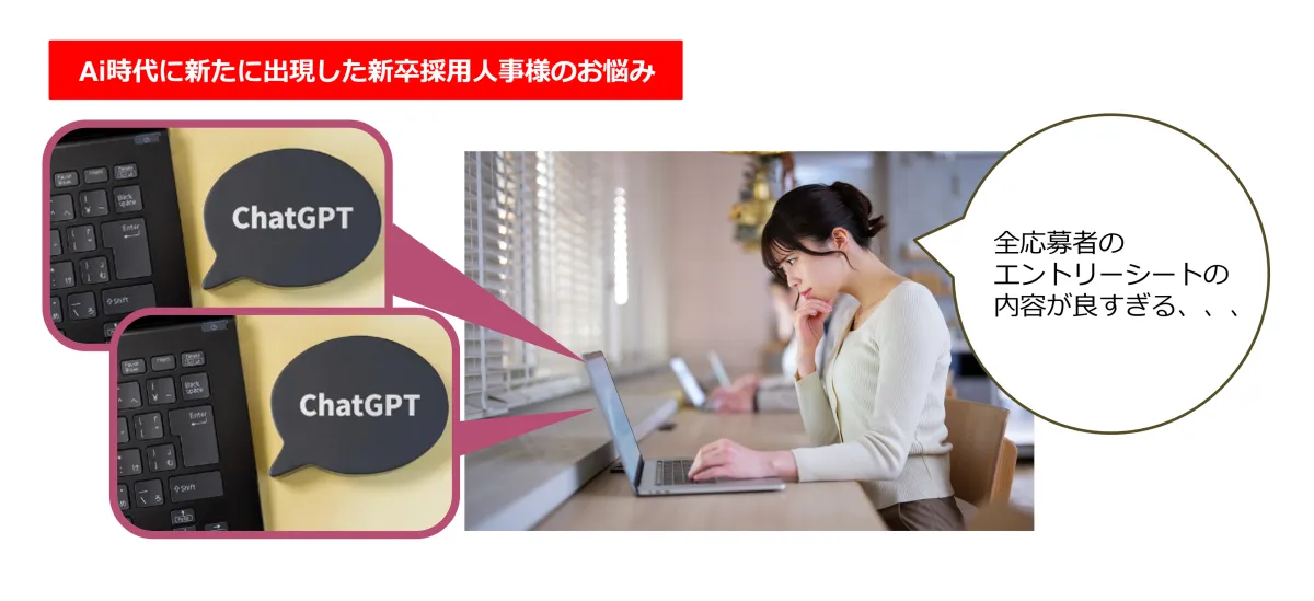 ChatGPTなどのAI技術が登場したことで、多くの大学生が授業や日常でAIを活用している現状があります。その結果、エントリーシートの内容が洗練され、採用担当者は候補者の思考力や人間性を見抜くのが難しくなってきました。本サービスは、こうした問題に立ち向かうために開発されました。評価の基準をテキストから行動にシフトすることで新鮮な視点を提供します。