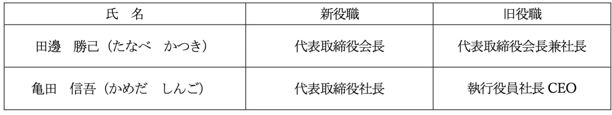 田邊氏は経営アドバイザーの役職を辞退し、亀田氏をサポートする形での役割を果たすことで、両者が協力して企業の基盤を強化していく流れが見込まれています。経営体制の強化に向けた新しい取り組みを展開することが期待されています。