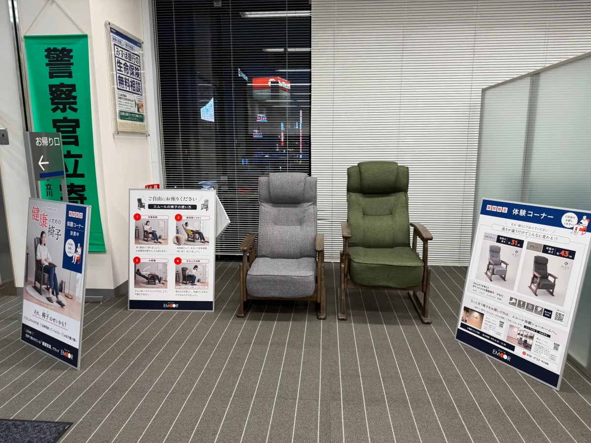 エムールの「健康のために椅子体験コーナー」は、立川に暮らす人々にとって健康意識を高める絶好の機会です。この機会を是非活用して、健康に寄与する椅子の重要性を理解し、自らの健康づくりを進めましょう。お近くの方は、ぜひ立ち寄ってみてください。