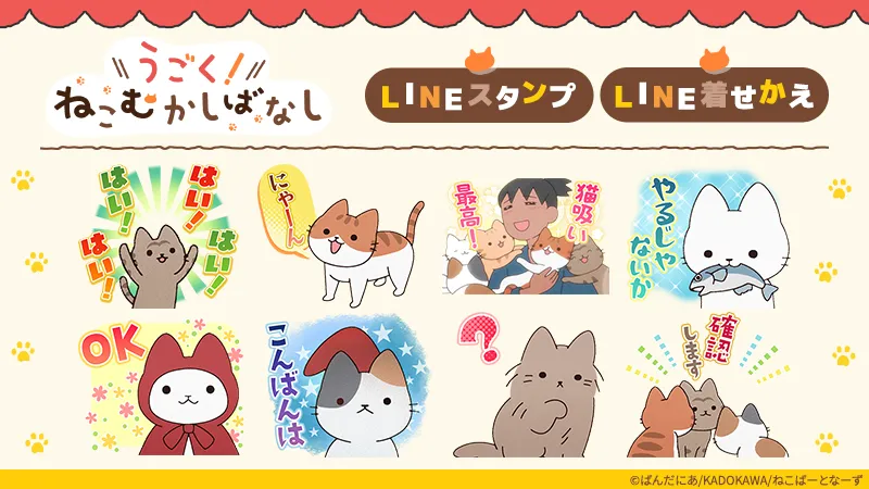 アニメ『うごく!ねこむかしばなし』がLINEスタンプと着せかえで登場!