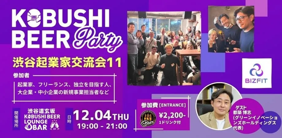 2025年12月4日(木)19:00より、東京・渋谷にある「KOBUSHI BEER LOUNGE & BAR」で、起業家やフリーランスに向けた特別な交流会が開催されます。このイベントは、起業に興味がある方々が集まり、新たなビジネスチャンスや人脈を築く場として注目されています。