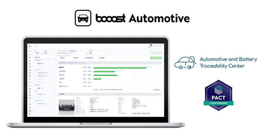 「booost Automotive」は、製品単位と組織単位でのカーボンフットプリント(PCF)の算定を高精度に実現する自動車業界初の統合プラットフォームです。また、国際的な製品規制やCSRD(企業サステナビリティ報告指令)に対応するためのサプライチェーン全体のGHG排出量や製品単位でのPCF管理が可能です。これにより、自動車メーカーやサプライヤーは、より効率的にサステナビリティ情報を管理し、開示を行うことができるようになります。