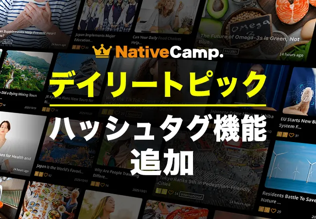 オンライン英会話サービス「ネイティブキャンプ」を展開する株式会社ネイティブキャンプが、人気教材「デイリートピック」に新しい機能を追加しました。その名も「ハッシュタグ機能」です。この機能により、ユーザーは興味のあるトピックの記事を素早く見つけることができ、効率的に英語を学ぶことができます。