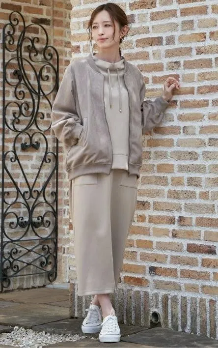 このスタイルは、ラフさを演出しながらもおしゃれでサマになるデザイン。まず、フェイクスエードブルゾンは、価格が5,990円(税込6,589円)で、チャコール、ベージュ、グレーの3色展開。サイズはS、M、Lから選べます。また、GOKU楽鹿の子ダンボールプルオーバーは、柔らかな着心地と軽やかさが特徴で、2,990円(税込3,289円)。色展開は、ブラック・イエロー・グリーン・ブルー・ベージュ・コーヒーの6色があります。これに合わせるGOKU楽鹿の子ダンボールスカートも、同様のカラーで展開されており、価格は3,990円(税込4,389円)。