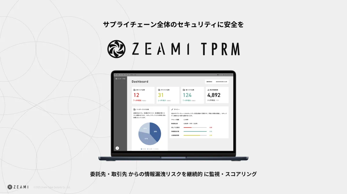 近年、企業におけるサプライチェーンリスクの重要性が高まってきています。その背景には、取引先や委託先が受けたサイバーインシデントが、自社の業務や信用に深刻な影響を与えるケースが増えていることが挙げられます。こうした状況に対応するために、ZeamiCyberSecurity株式会社が新たに提供を開始したのが、サプライチェーンリスクを自動で可視化し評価する『Zeami TPRM(Third Party Risk Management)』です。