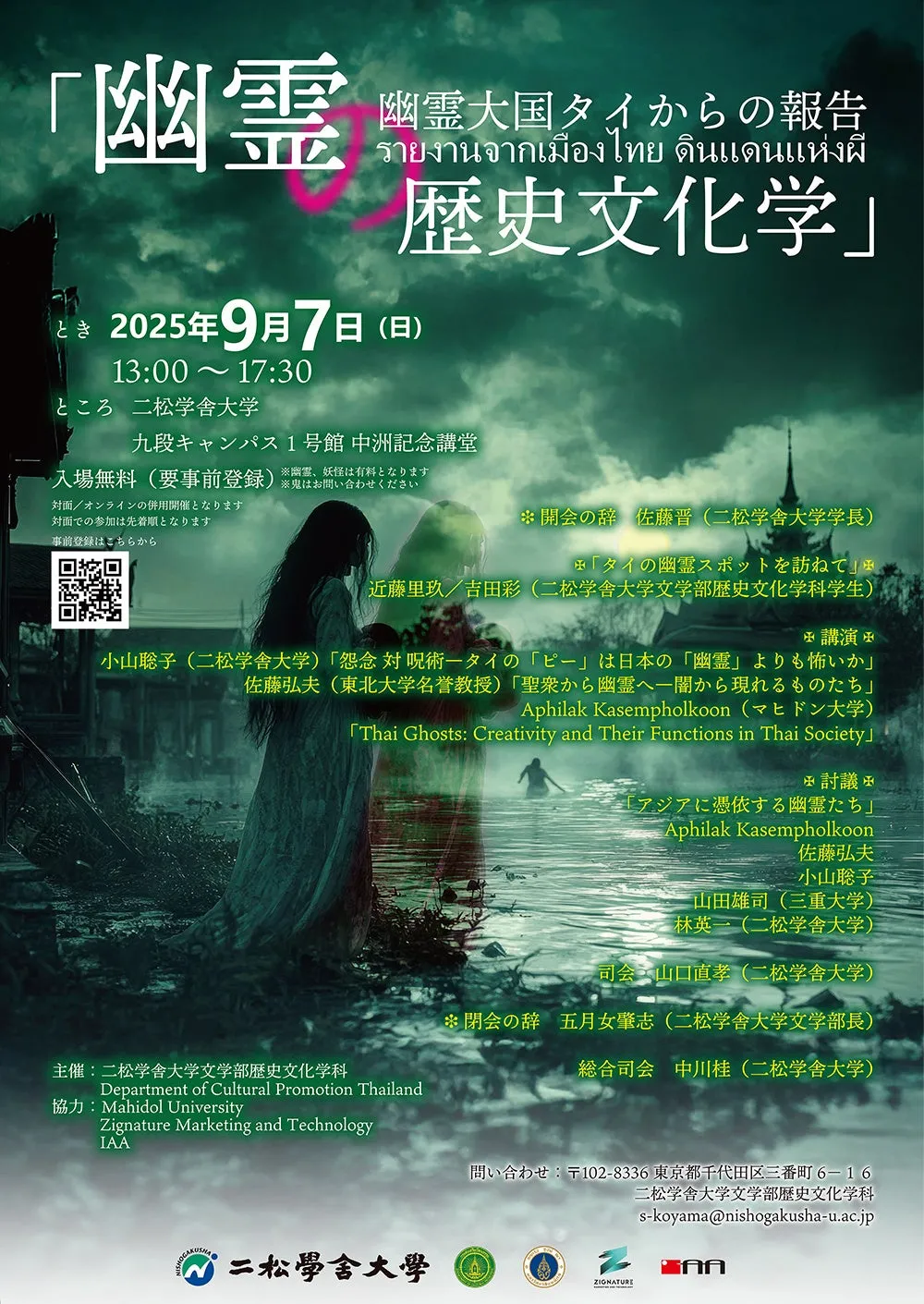 2025年9月7日(日)、東京の二松学舎大学九段キャンパスにおいて、シンポジウム「幽霊の歴史文化学―幽霊大国タイからの報告」が行われます。このシンポジウムは、幽霊に関するアカデミックな研究を深めるために設立され、毎回異なる文化圏からの視点を提供しています。今回は「タイ」という幽霊文化の豊かな国に焦点を当て、そのユニークな信仰と物語を探求することが目的です。