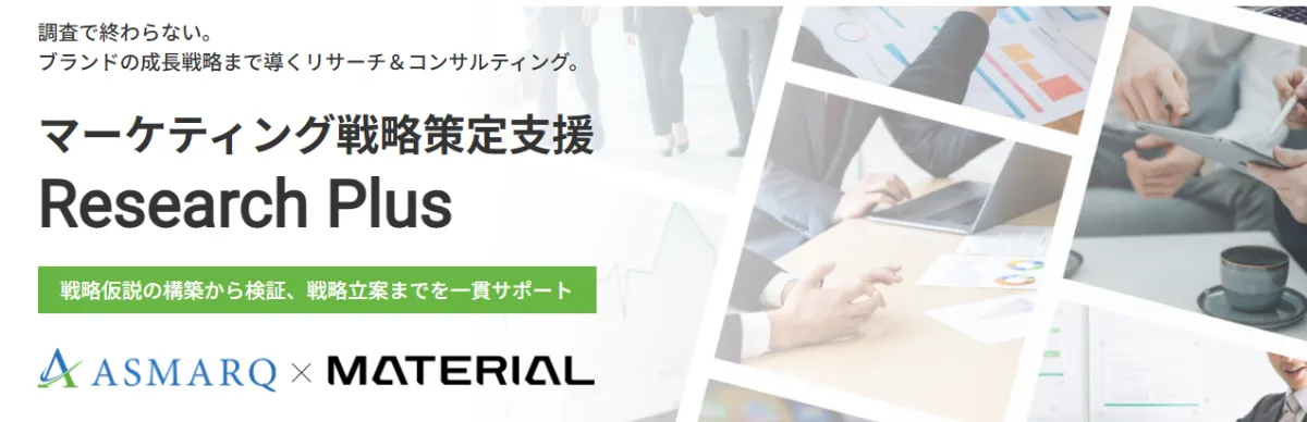 企業が成功するためには、効果的なマーケティング戦略が不可欠です。しかし、多くの企業が直面しているのは、収集した調査結果を活かしきれないという課題です。調査データが戦略や商品開発に結びつかない場合、企業の成長は阻まれます。そこで、アスマークとマテリアルは、調査から戦略までを一貫して支援するサービスとして「Research Plus」を開発しました。