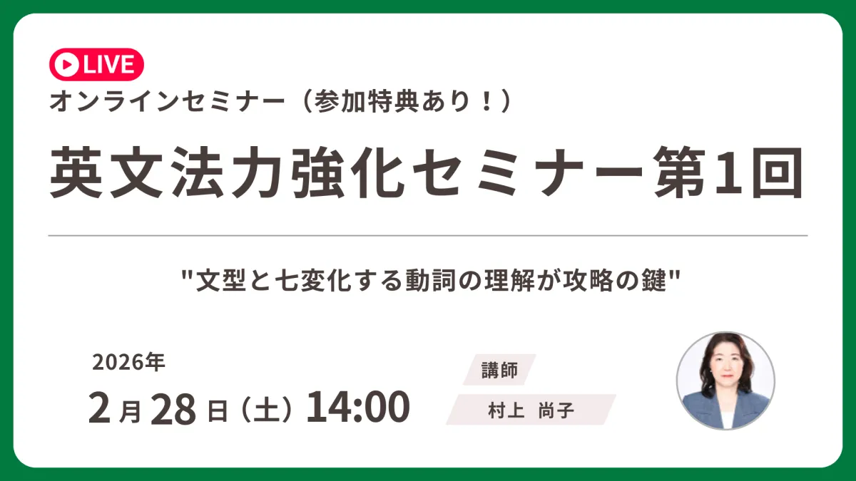 TAC株式会社は、2026年2月28日(土)に、TOEIC® L&R TEST対策のオンラインセミナーを実施します。このセミナーは、TOEIC受験を考えている方、特に英文法に不安を抱えている方々にとって、必要な知識を得るための絶好の機会となります。
