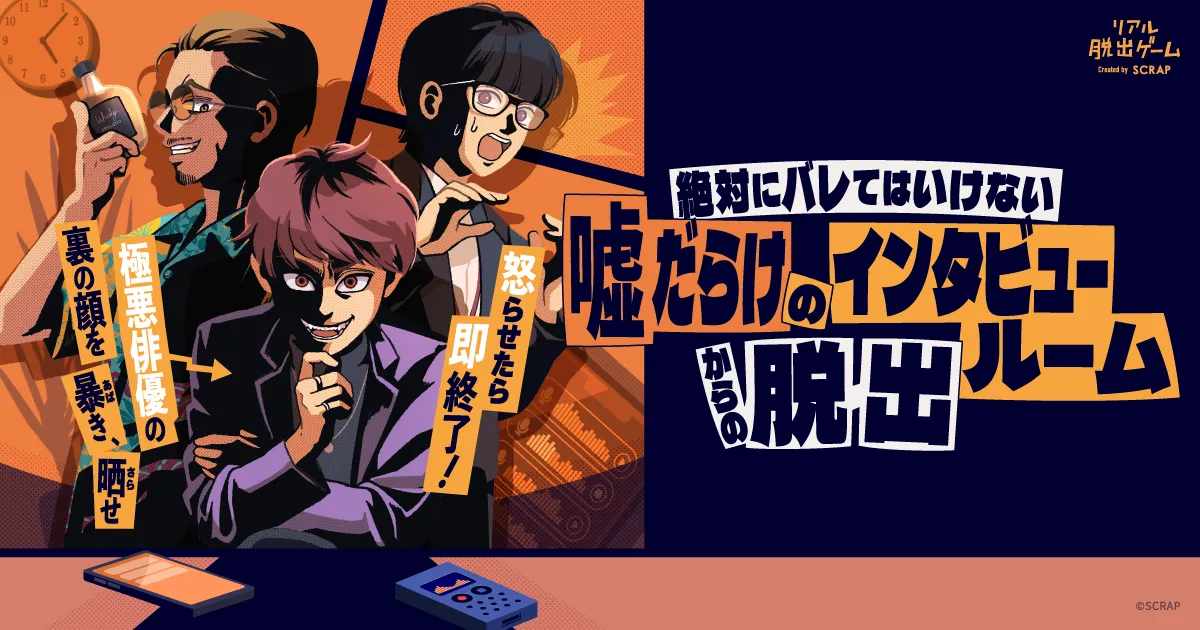 株式会社SCRAPが新たに企画したリアル脱出ゲーム『絶対にバレてはいけない噔だらけのインタビュールームからの脱出』、通称「インタビュー脱出」が2025年9月11日(木)から東京の吉祥寺店で初の公演を迎えます。全世界で累計1,490万人以上を動員しているSCRAPが手掛けるこのイベントは、参加者が物語の登場人物となり、極悪俳優の裏の顔を暴くというサスペンスフルなストーリーが繰り広げられます。