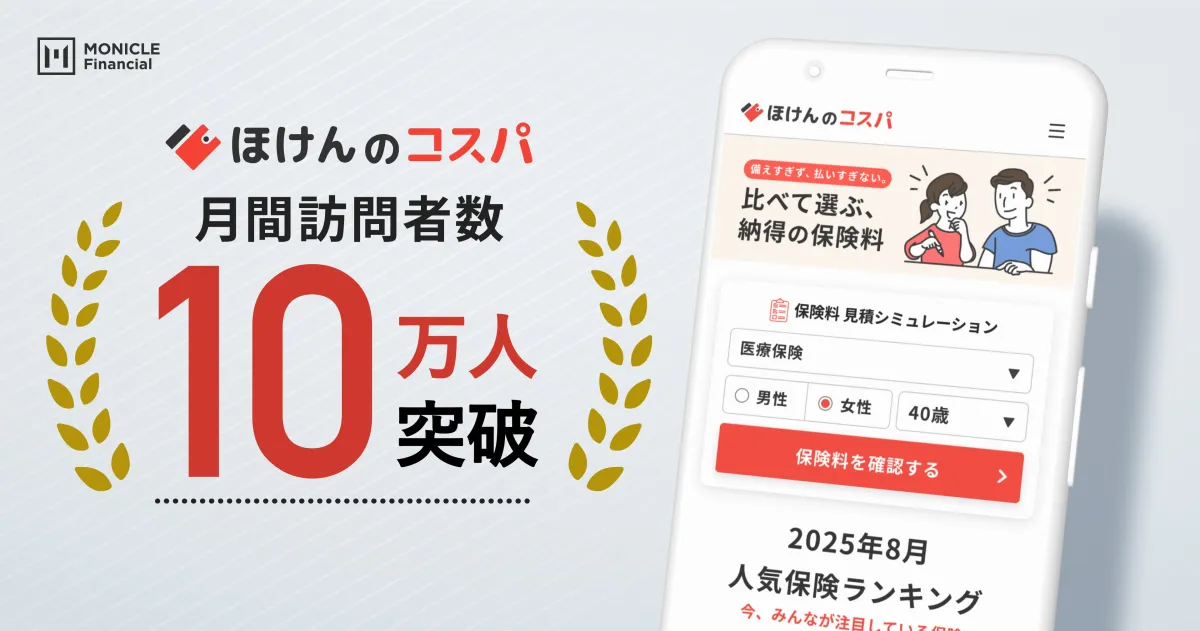 株式会社モニクルフィナンシャルが運営するオンライン保険比較・見積もりサービス『ほけんのコスパ』が、2025年7月に月間ユニークユーザー数が10万人を突破しました。このサービスは、利用者がスムーズに保険選びを行えるよう、比較から申し込みまでをサポートする無料のプラットフォームです。2024年6月にスタートしたこのサービスは、短期間で多くの信頼を集め、成長を遂げてきました。