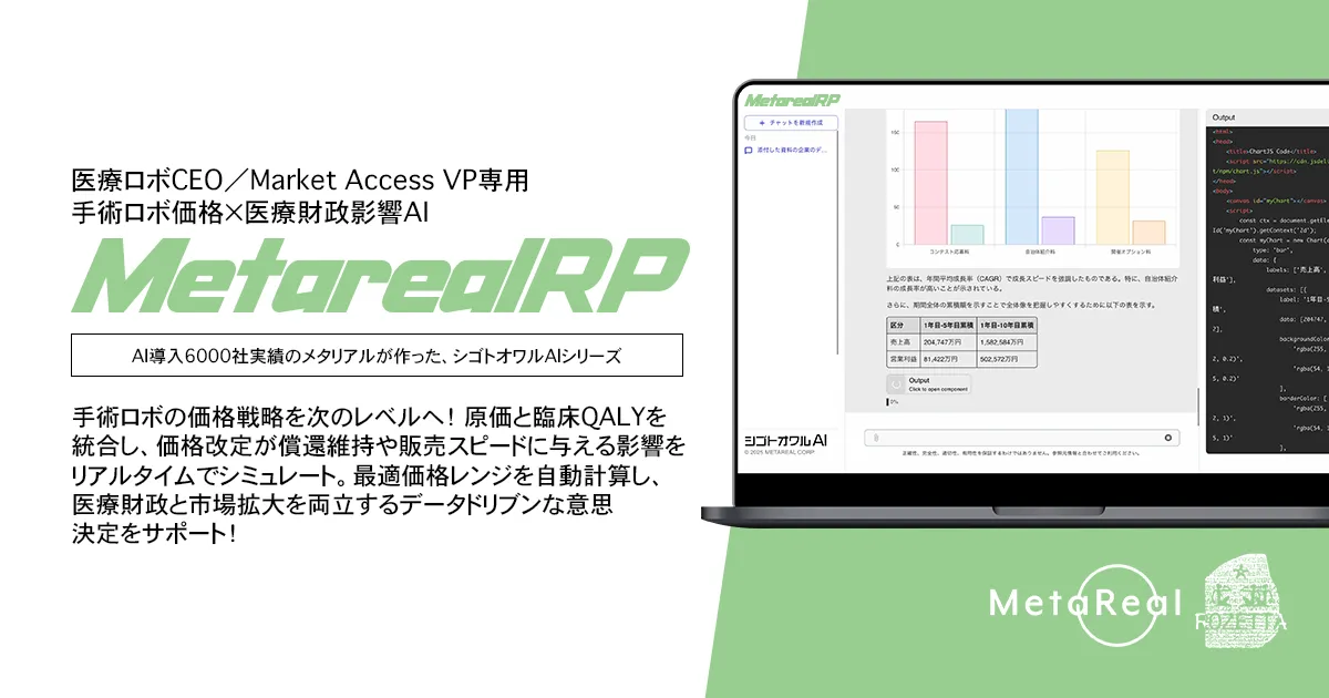 2025年8月21日、メタリアル・グループの株式会社ロゼッタが開発した新しいAIエージェント「Metareal ロボプライス」(以下、Metareal RP)が市場に登場しました。このツールは手術ロボットの価格と医療財政の影響を同時にシミュレーションすることを目的としています。