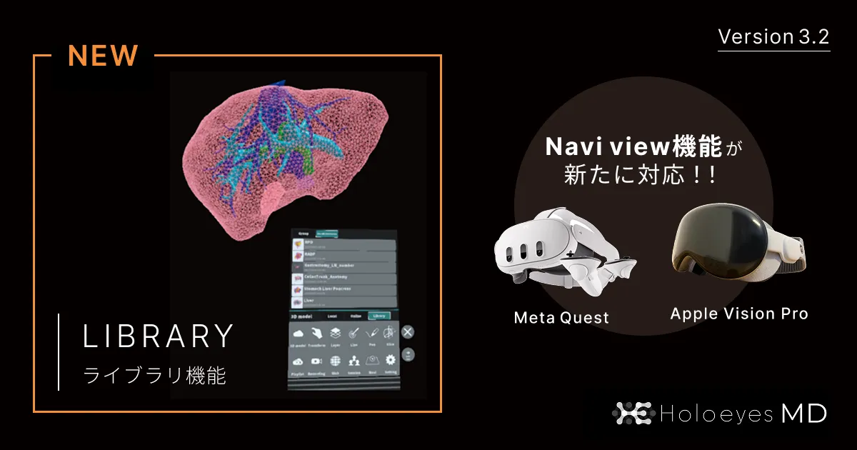 医療の質を向上させるためには、個々の医師の経験だけでなく、貴重な症例や手術のための知見を広く共有することが不可欠です。Library機能の装備により、Holoeyes MDはもはや単なる「3Dモデル作成・閲覧ツール」にとどまらず、医療知見が循環するための「プラットフォーム」としての役割も果たすことになります。この新たな方向性は、医師たちがより多くの情報を得ることで、患者へのアプローチを革新する可能性を秘めています。