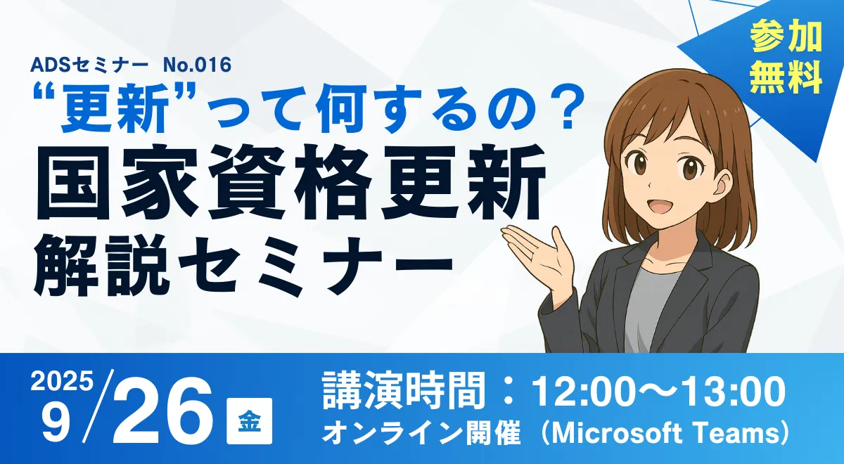 今回のセミナーでは、資格更新に必要な手続きや、注意すべきポイントが詳しく解説されます。「何を準備すればよいのか知りたい」という方や「更新にどんな講習が必要なのか不安」という方にとって、実践的かつ役立つ情報を得る良い機会となるでしょう。