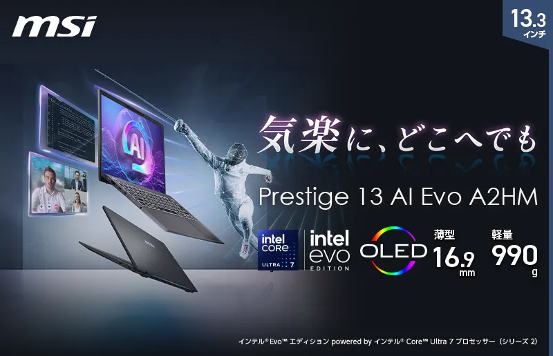 エムエスアイコンピュータージャパン株式会社が、働く場所を選ばないビジネスシーン向けの新しいノートPC、「Prestige 13 AI Evo A2HM」シリーズを発表しました。2025年11月20日(木)から順次発売予定で、洗練されたデザインと最新の先進機能を搭載しています。
