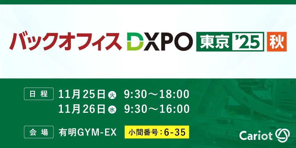 株式会社キャリオットは、2025年11月25日と26日に東京・有明GYM-EXで開催される「バックオフィスDXPO東京」に出展することを発表しました。このイベントは、企業のデジタルトランスフォーメーション(DX)を支援するための様々なソリューションが一堂に集まる専門展です。