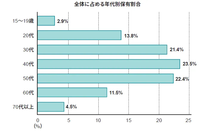 調査結果によると、Sony Bank WALLETのメインユーザーは30代から50代の世代に集中しています。この世代の中では、40代が最多で23.5%、次いで50代の22.4%、そして30代が21.4%と続いています。これに対して、15歳から29歳の若者は16.7%を占め、60代や70代のユーザーも16%いることがわかりました。幅広い年代に利用されていることが確認でき、特に中堅世代が多いことが際立っています。