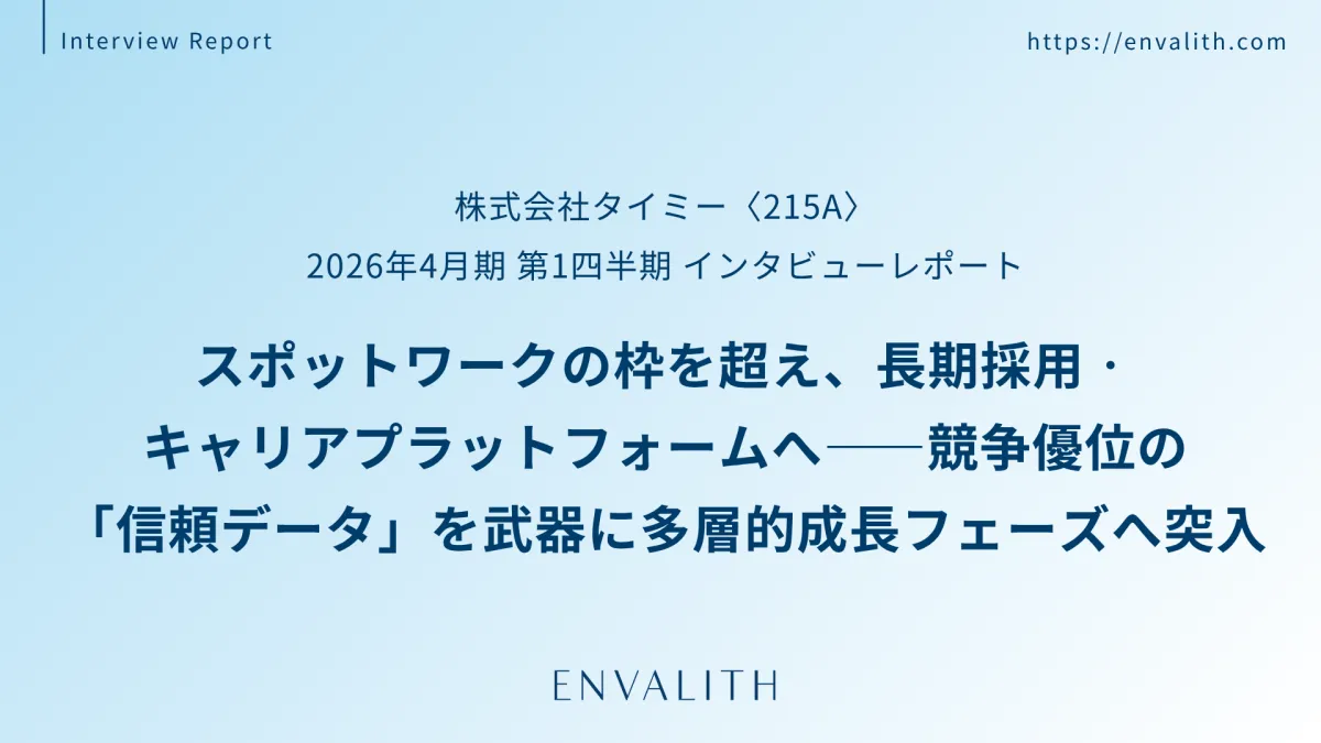 エンヴァリスは、次世代型の株式リサーチプラットフォームとして、タイミーやその他の企業のリサーチを提供しています。日本語、英語、中国語の3か国語での情報発信を行い、国内外の機関投資家や個人投資家に向けて、企業価値の分析を行っています。さらに、決算発表直後の速報レポートを通じて、多角的な分析を迅速に届けることを目指しています。