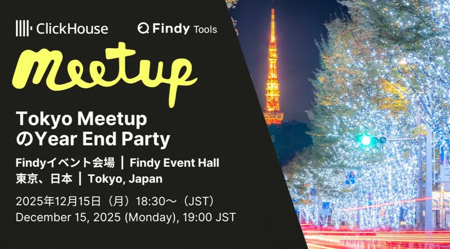2023年12月15日、データ分析基盤の大手企業ClickHouseが待望の「ClickHouse Tokyo Meetup & Year End Party」を開催します。このイベントは、東京のアートヴィレッジ大崎ビュータワーで18時30分からスタート。ClickHouseの魅力を深く知りたい方や、データ分析に関心がある皆様にとって、見逃せない機会です。